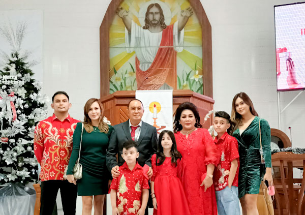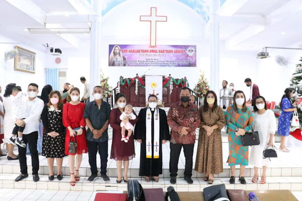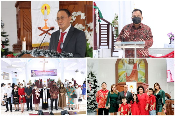 Sementara Wakil Bupati Minahasa Robby Dondokambey bersama Wakil Ketua TP-PKK Minahasa Martina Dondokambey-Lengkong beserta Keluarga, Beribadah Hari Natal bersama-sama Jemaat GMIM Petra Sawangan, Wilayah Kembes.