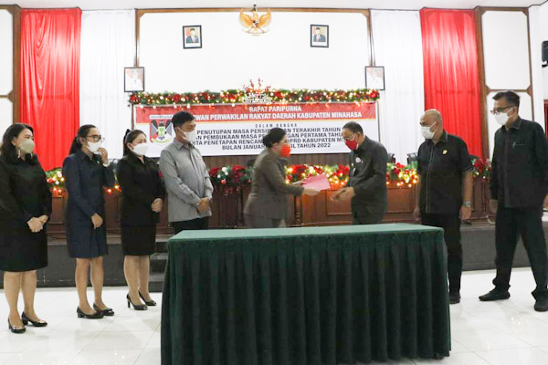 MINAHASA – Dewan Perwakilan Rakyat Daerah (DPRD) Kabupaten Minahasa menggelar rapat paripurna dalam rangka penutupan masa sidang terakhir Tahun 2021 dan penutupan masa sidang pertama Tahun 2022, serta penetapan rencana kerja DPRD bulan Januari hingga April di tahun ini, Senin (3/1/2021).