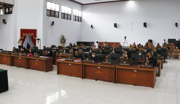 Rapat paripurna DPRD Minahasa ini dipimpin Ketua dewan Glady Kandouw, SE didampingi Wakil Ketua Denny Kalangi dan dihadiri langsung Bupati Royke Octavian Roring (ROR) serta Sekda Frits Muntu, S.Sos bersama Forkopimda dan seluruh pejabat Pemkab.