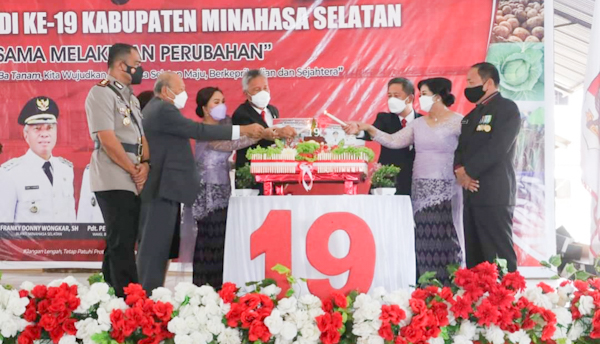 Amurang – Pemerintah Kabupaten Minahasa Selatan dibawah kepemimpinan Bupati Franky Donny Wongkar SH (FDW) dan Wakil Bupati Pdt. Petra Yanny Rembang (PYR) melaksanakan sejumlah agenda dalam rangka memperingati Harijadi ke-19 Kabupaten Minahasa Selatan dengan tema “Bersama Lakukan Perubahan”, Kamis (27/1/2022).