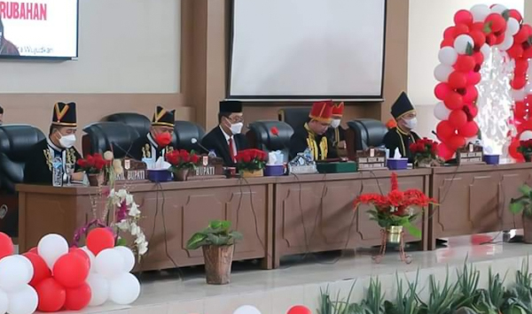 Kemudian kegiatan berlanjut dengan Sidang Paripurna istimewa yang dilaksanakan di ruangan rapat Gedung DPRD Minsel.