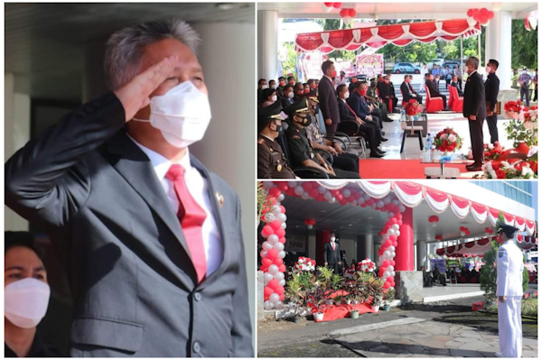 Bupati Minsel Frangky Donny Wongkar pada saat menyampaikan sambutan di kegiatan upacara mengajak segenap warga Kabupaten Minahasa Selatan dari Munte sampai Durian, Rap-rap sampai Sinisir, menjadikan Harijadi ke-19 Kabupaten Minsel momentum untuk bangkit dari situasi sulit akibat pandemi Covid-19 yang melanda dunia dalam kurun waktu 2 tahun terakhir.