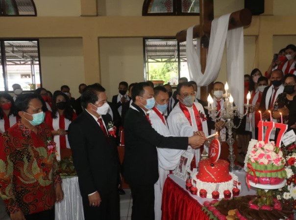 Meskipun kita berada dalam masa pandemi tetapi kita harus selalu optimis dan tetap berusaha melakukan yang terbaik. melalui ibadah syukur ini tentu akan memberi semangat dan motivasi yang baru kepada kita sekalian dalam pelayanan kepada jemaat dan masyarakat serta dalam menjaga, memelihara dan meningkatkan capaian prestasi dan hasil-hasil pembangunan yang telah kita torehkan,” tandasnya.