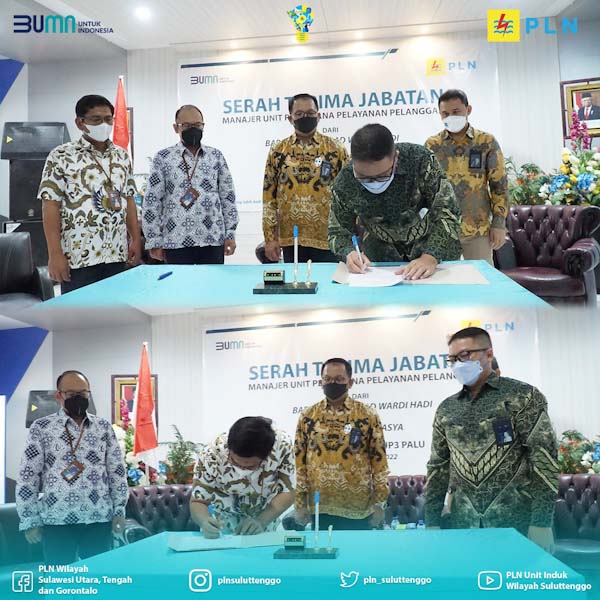 Hal tersebut ditandai dengan Acara Serah Terima Jabatan (Sertijab) yang disaksikan langsung oleh General Manager PLN Unit Induk Wilayah Suluttenggo, Leo Basuki beserta jajaran manajemen serta pegawai UP3 Palu, Jumat (28/01).