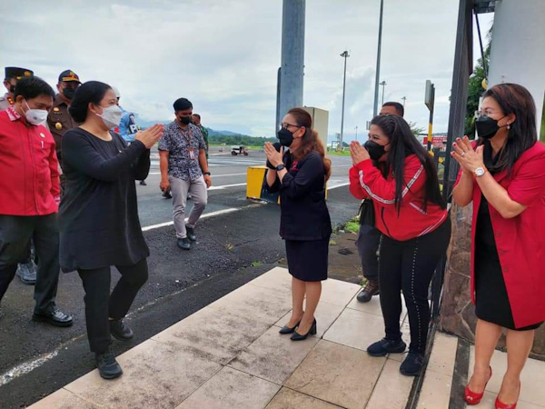 Puan dijemput Gubernur Olly Dondokambey, para Walikota dan Bupati juga Forkopimda di Bandar Udara Internasional Dr Sam Ratulangi Manado bersama Ketua DPRD Minahasa Glady Kandouw. “Selamat datang di Sulawesi Utara Ketua DPR RI, ibu Puan Maharani,”ucap Glady.