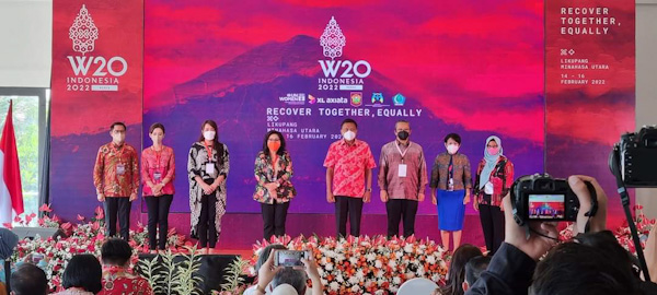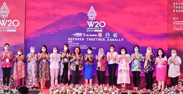 Minahasa – Ketua TP-PKK Kabupaten Minahasa, Dra. Ny. Fenny Roring-Lumanauw, SIP menghadiri pembukaan dan dialog kegiatan Women20 (W20) yang merupakan side event dari kegiatan internasional Group20 (G20) yang digelar di Likupang, Minahasa Utara, Selasa 15 Februari 2022.