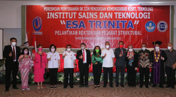 Di Lantik sebagai rektor Intitut Sains dan Teknology Esa Trinita, Harvani Boky yang selanjutnya juga turut di Lantik secara bersama sejumlah pejabat akademisi lainya di jajaran rektorat.