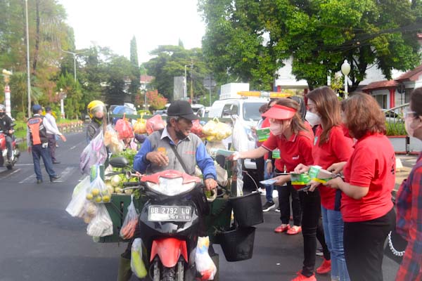 Terpantau, Jumat(18/2) di depan Kantor Wali Kota Manado Ketua TP-PKK Kota Manado Ny Iren Angouw – Pinontoan bersama TP-PKK kota Manado bersinergi dengan Dinas Kesehatan Kota Manado membagikan masker kepada pengguna jalan.