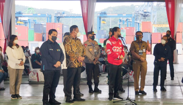 Bitung, – Wali Kota Bitung Ir. Maurits Mantiri, MM dan Wakil Wali Kota Bitung Hengky Honandar, SE dampingi Presiden Republik Indonesia (RI) Ir. Joko Widodo untuk meninjau vaksinasi masyarakat Kota Bitung di PT. Pelindo IV (Persero) Pelabuhan Peti Kemas Bitung, usai meresmikan jalan tol Manado-Bitung ruas tol Danowudu-Bitung sepanjang 13,5 Kilometer (KM), pada hari Jumat (25/02/2022).