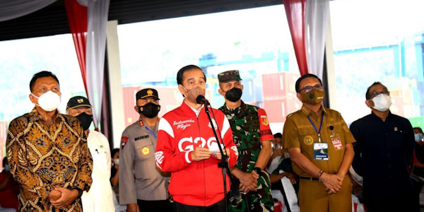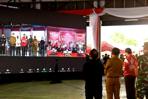 Dalam kesempatan itu, Jokowi mendengarkan laporan capaian vaksinasi yang dipaparkan para kepala-kepala daerah yang ada di Sulawesi Utara (Sulut) melalui video conferece. Usai mendengarkan laporan dari seluruh kepala daerah di Sulut, Jokowi terlihat sangat puas atas laporan capaian vaksinasi yang sudah diatas capaian nasional 70% (persen).