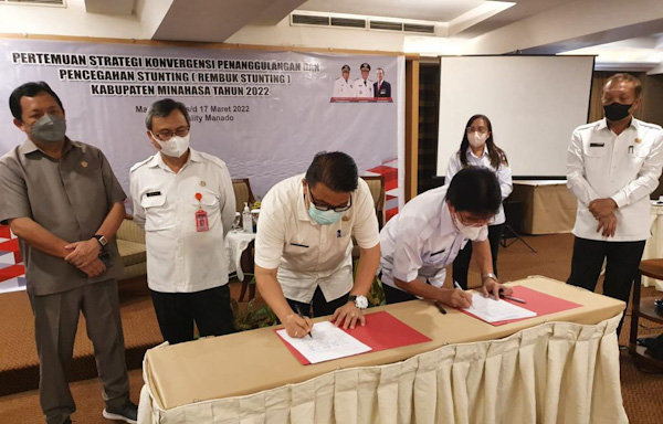 Kegiatan yang dihadiri oleh Ketua DPRD Minahasa yang diwakili oleh Herson Walukouw SH dan Assisten Bidang Pemerintahan dan Kesra Sekdakab sekaligus Plt Kepala Dinas Kesehatan Drs Riviva Maringka MSi, yang ditandai dengan Penandatanganan Komitmen Bersama dalam hal Percepatan Penurunan Stunting di Kabupaten Minahasa oleh para Kepala OPD yang hadiri, masing-masing Kepala Bapelitbang Philip Siwi SE, Kepala Dinas Sosial dr Maya Rambitan MKes, Kepala Dinas PUPR Silvanus Teddy Lumintang ST, Kepala Dinas Kominfo Agustivo Tumundo SE MSi, Plt Kepala Dinas Pendidikan Hansje Wuwungan MPd, Plt Kepala Dinas PPKB Syultje Panambunan SE MAP dan para Camat se-Kabupaten Minahasa, yang turut dihadiri oleh Sekretaris Dinas Kesehatan dr Gabby Doaly MKes, Kepala Bidang Kabid Kesehatan Masyarakat Dinkes Juniani Mogot Amd Farm, Kabid Sumber Daya Kesehatan Dinkes Meity Runtunuwu SKep dan jajaran terkait lainnya.
