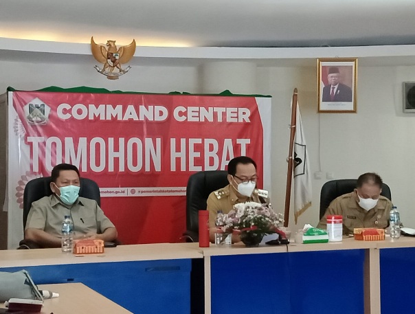 Tomohon – Wali Kota Tomohon menghadiri rapat pembahasan permohonan perpanjangan masa penarikan pinjaman Pen pemerintah Kota Tomohon secara virtual zoom meeting, yang bertempat di command center MPP wale kabasaran, Senin, (14/3/22).