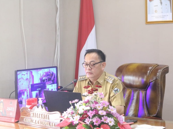 Tomohon – Wali kota Tomohon Caroll Senduk SH membuka langsung kegiatan Musyawarah Rencana Kerja Pemerintah Daerah Kota Tomohon Tahun 2023 via zoom meeting via zoom meeting, di Kantor Wali Kota Tomohon, Selasa (22/3/22).