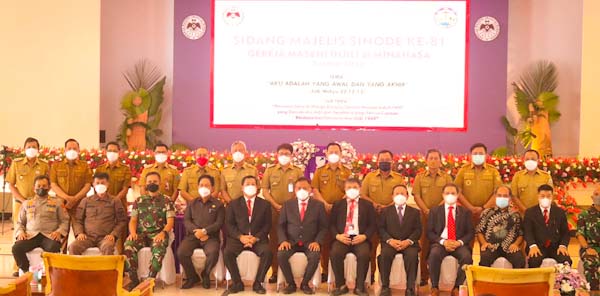 SULUTNEWSTV.com, TOMOHON – Wali Kota Manado Andrei Angouw dan Wakil Wali Kota Manado dr Richard Sualang, menghadiri Pembukaan Sidang Majelis Sinode (SMS) ke-81 GMIM tahun 2022 di Kantor Sinode GMIM Tomohon, Senin(28/3).
