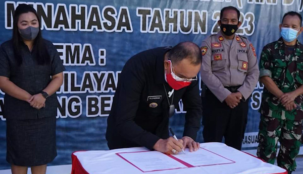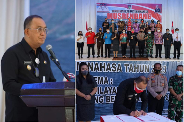Kegiatan tersebut dirangkaikan dengan penandatanganan Berita Acara kesepakatan hasil Musrembang RKPD Kabupaten Minahasa Tahun 2023.