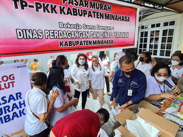 Pasar murah ini dilakukan dalam rangka menyambut Idul Fitri dan Paskah Tahun 2022 yang digelar TP-PKK Kabupaten Minahasa bekerjasama dengan Dinas Perdagangan, Dinas Pangan dan Dinas Pertanian.