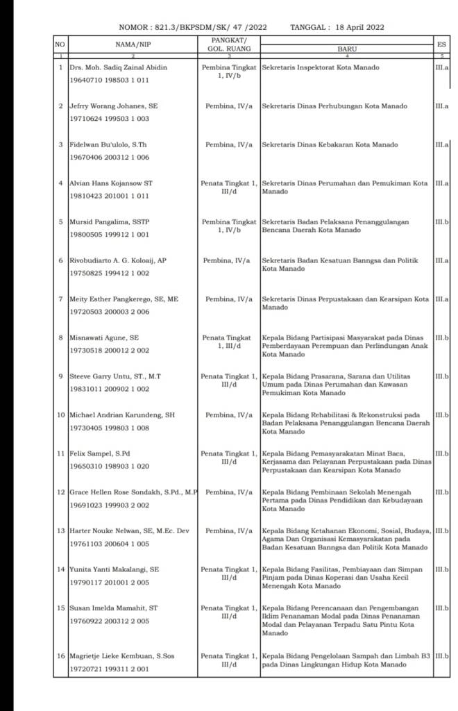 Berikut Daftar Pejabat Yang Baru Dilantik :