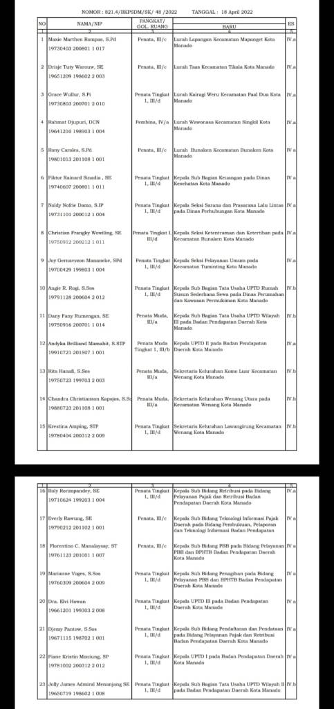 SULUTNEWSTV.com, MANADO – Wali Kota Manado Andrei Angouw dan Wakil Wali Kota Manado dr Richard Sualang kembali melakukan penyegeran kabinet di Pemerintah Kota Manado, Senin(18/4) di aula serbaguna Pemkot Manado.