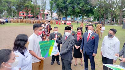 SULUTNEWSTV.com, MANADO – Wali Kota Manado Andrei Angouw dan Wakil Wali Kota Manado dr Richard Sualang, secara simbolis menyerahakan kartu peserta ketenagakerjaan oleh BPJamsostek Cabang Sulawesi, tepat dihari Pendidikan Nasional yang dirangkaikan dengan Apel Kerja Perdana Pasca Cuti Bersama Hari Raya Idul Fitri 1443 H Tahun 2022 di Lapangan Sparta Tikala, Senin (9/5).