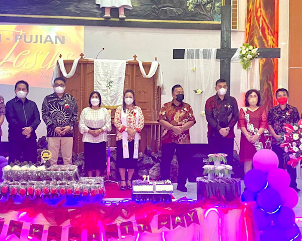 Dalam Ibadah ini dilakukan pula penyalaan lilin HUT ke-71 oleh khadim Pdt Vanny Arina-Suoth dan Wakil Bupati Robby Robby Dondokambey, yang ditiup bersama oleh semua Pelsus yang mendampingi. (CT)