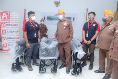 Dalam kegiatan itu, Alfamidi menyalurkan berbagai kebutuhan alat bantu bagi penyandang cacat dari kalangan veteran sesuai kebutuhan dengan pilihan kursi roda, tongkat jalan, hingga kacamata.