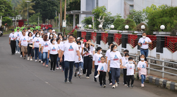 Usai Ibadah Ketua BPMJ Pdt. Raymon Rende, STh bersama ketua Panitia Pnt. Drs. Jantje Wowiling Sajow, MSI Wakil Ketua Moudy Lontaan, S. Sos, Sekretaris Nofry Sendoh, Bendahara John Pantouw, dan Koordinator Olahraga Yongki rantung melepas peserta jalan sehat dari kolom 1 hingga kolom 10.