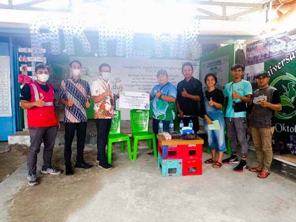 Pemberian bantuan dilakukan langsung di lokasi pembangunan Bank Sampah Pelita Hijau di Kota Kotamobagu.