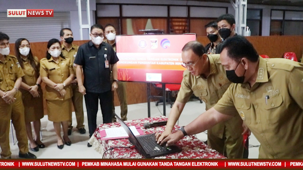Tondano – Pemerintah Kabupaten Minahasa mulai berlakukan tanda tangan elektronik. Berlakunya Tanda tanda elektronik ini saat Bupati Minahasa Dr. Ir. Royke Octavian Roring, MSi bersama Wakil Bupati Minahasa Dr. (HC) Robby Dondokambey, SSi, MM melakukan launching di lingkungan Pemkab Minahasa, Senin, (27/6/2022) di Rumah Dinas Bupati, Sasaran Tondano.