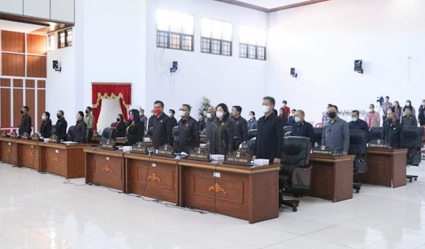 MINAHASA – DPRD Minahasa gelar rapat paripurna dalam rangka penyampaian Rancangan Peraturan Daerah (Ranperda) pertanggungjawaban APBD Tahun Anggaran 2021 di ruang sidang kantor dewan, Kamis (30/6).