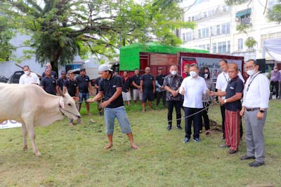 Hal itu disampaikan oleh Direktur Utama BSG Revino Pepah kepada sulutnewstv.com disela giat penyembelihan Hewan Kurban oleh BSG dalam rangka Hari Raya Idul Adha di Area Marina Plaza Manado, Senin(10/7/2022).