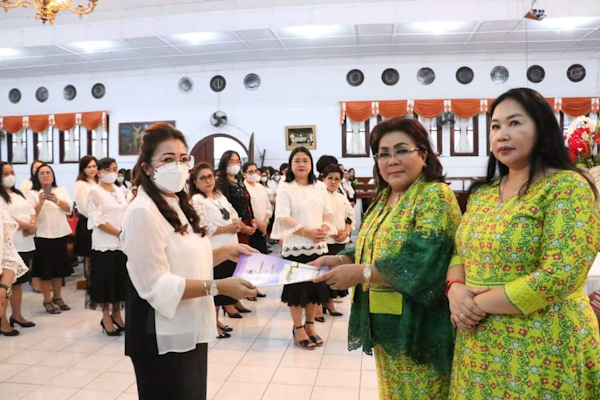 Tondano – Ketua Badan Pekerja Majelis Sinode (BPMS) Gereja Masehi Injili di Minahasa (GMIM), Pendeta Hein Arina, melantik Kelompok Kerja (Pokja) Komisi Pelayanan Wanita/Kaum Ibu (WKI) Sinode GMIM periode 2022-2027 dalam ibadah bersama di Gereja Sentrum Tondano, Minggu (10/7).