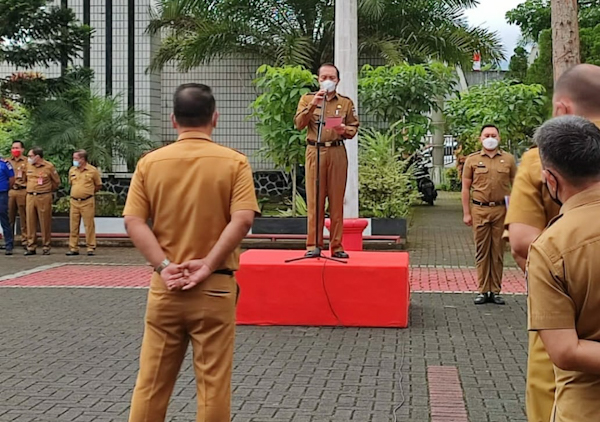 Diharapkan Sekda agar kerjakan tugas dan tanggung jawab dengan ketulusan, jangan meggangap pekerjaan sebagian suata beban, tetapi jadikan sebagai suatu langkah kebaikan.Sekda menginstruksikan agar dalam memperingati HUT ke 77 proklamasi kemerdekaan Republik Indonesia tahun 2022, seluruh Kepala OPD, para Camat dan Lurah/Hukum Tua untuk mengibarkan Bendera Merah Putih dan umbul-umbul di kantor, depan rumah dan di seluruh fasilitas umum lainnya, serta hiasan ornamen kemerdekaan sesuai dengan ketentuan yang berlaku.