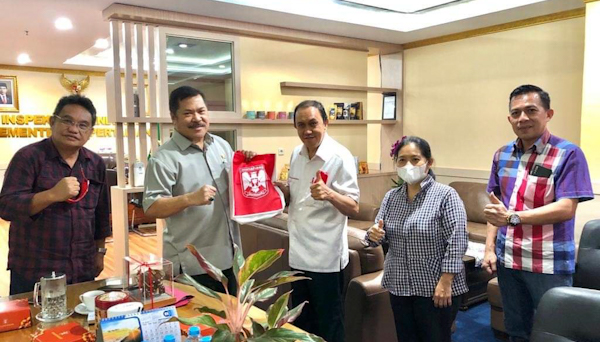 Minahasa – Bupati Minahasa Dr. Ir. Royke Octavian Roring M,Si, IPU, Asean. Eng melaksanakan kunjungan kerja di Kementerian Pertanian RI yang diterima langsung oleh Inspektur Jenderal Kementerian Pertanian, Dr Jan S Maringka, SH. MH di dampingi inspektur IV Itjen Kementerian Pertanian RI IGMN Kuswandana, Selasa (2/8).