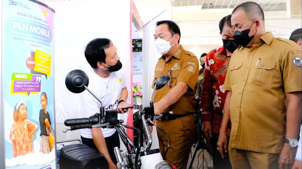 Walikota Tomohon juga tak melewatkan momen kunjungannya ke booth milik PLN dalam kegitan expo tersebut. Beliau terlihat takjub saat melihat motor listrik dengan konsep motor monkey mini hasil dari konversi motor dinas operasional PLN yang rusak.