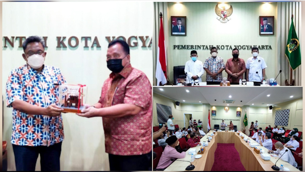 Minahasa – Wakil Bupati Minahasa Dr. (H.C). Robby Dondokambey, S.Si, MM yang juga selaku Ketua Dewan Penasehat FKUB Kabupaten Minahasa bersama Pengurus FKUB Kabupaten Minahasa Melaksanakan Kunjungan Kerja dan Studi Tiru ke Pemerintah Kota Yogyakarta dan diterima langsung oleh Sekda Kota Yogyakarta Ir. Aman Yuriadijaya, MM, didampingi oleh Kepala Badan Kesatuan Bangsa dan Politik Kota Yogyakarta Budi Santoso, S.STP, M.Si dan Ketua FKUB Kota Yogyakarta Prof Dr. Muhammad M.AG bertempat di Ruang Yudistira Balai Kota Yogyakarta, Jumat (12/8/2022).