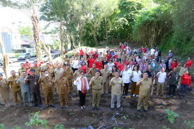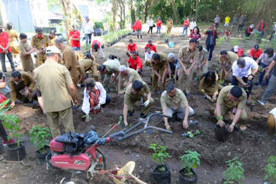 Kegiatan selanjutnya adalah Wali Kota AA, Ketua TP PKK bersama pejabat yang hadir melaksanakan penanaman Cabe serta tanaman lainnya.