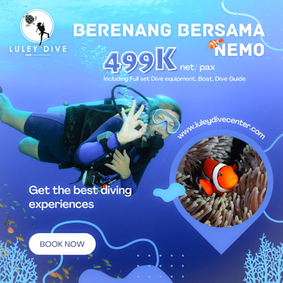 Sampai akhir Oktober 2022 ini, Luley Dive Center menyediakan paket promo menarik bagi anda yang tertarik untuk menjelajah alam bawah laut, program ini diberi nama ‘Berenang Bersama Nemo’, hampir mirip dengan Fun Dive tapi program ini dibatasi untuk kedalaman serta lamanya anda berada dalam air.