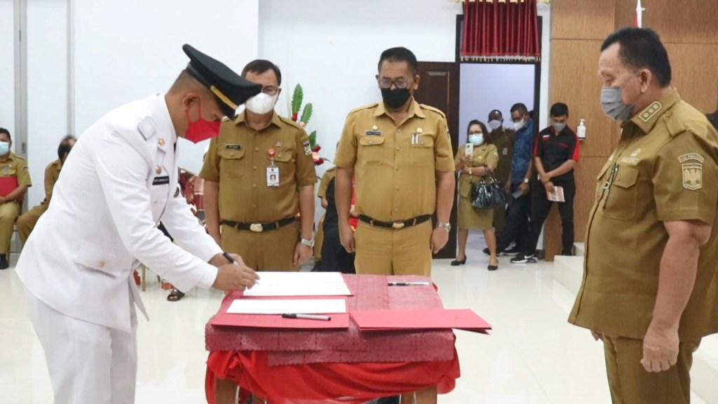 MINAHASA – Wakil Bupati Dr (Hc) Robby Dondokambey SSi MM (RD) lantik 40 pejabat administrator, pengawas dan jabatan fungsional di lingkup Pemerintah Kabupaten (Pemkab) Minahasa, di Ruang Sidang Kantor Bupati, Selasa (04/10/22).
