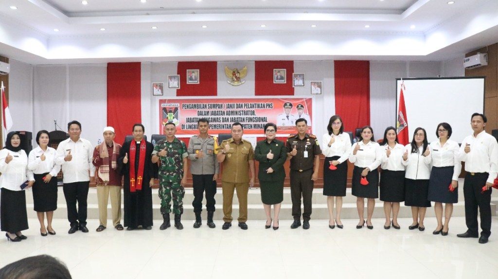 Sebelumnya, Kepala Badan Kepegawaian dan Pengembangan Sumber Daya Manusia (BKPSDM) Minahasa, Drs Moudy Pangerapan MAP, membacakan Surat Keputusan (SK) Bupati, terkait nama-nama PNS yang ikut dalam pengambilan sumpah/janji, serta pelantikan.