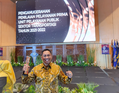 Penghargaan tersebut diterima oleh Minggus E.T. Gandeguai dalam dalam acara nominasi Prima Madya Penganugerahan Penilaian Pelayanan Prima Unit Pelayanan Publik Sektor Transportasi Tahun 2021-2022 di Ruang Mataram, Gedung Karya, Kementerian Perhubungan, Jakarta, Rabu (26/10/2022).