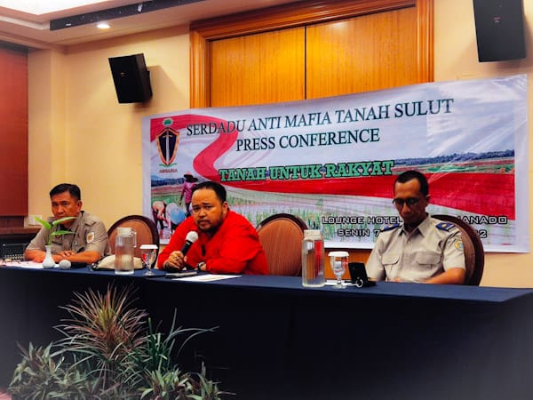 Bertempat di Hotel Aston Manado, Koordinator Serdadu Anti Mafia Tanah Sulut Risat Sanger, Kepala Bidang Penanganan dan Pengendalian Sengketa Kanwil BPN Sulut Rahmad Nugroho dan Kasie Pengendalian dan Penanganan Sengketa BPN Minut Alfrits Mamahit menggelar konfrensi pers bersama dengan jurnalis, Senin(7/11/2022) membahas persoalan yang masih sering terjadi dilapangan.
