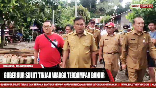 Tondano – Gubernur Sulawesi Utara (Sulut) Olly Dondokambey SE meninjau langsung dan memberikan bantuan kepada para keluarga yang terdampak Banjir Bandang di Kelurahan Papakelan, Kecamatan Tondano Timur, Kabupaten Minahasa, pada Senin (7/11/2022).