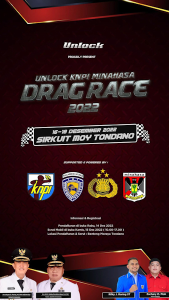 Tondano – Unlock KNPI Minahasa bekerjasama dengan pemerintah kabupaten minahasa sukses menggelar lomba Drag Race, yang dipusatkan di Sirkuit Moy Tondano, yang di mulai 16 hingga 18 Desember.