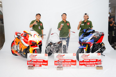 Ketiganya menyandang predikat sebagai National Champion setelah menyisihkan hampir 900 peserta dari berbagai daerah di Indonesia. Mereka para pemenangnya adalah Ruslan dari Makassar, Sulawesi Selatan, dianugerahi modifikator terbaik pada kelas Matic & Cub.