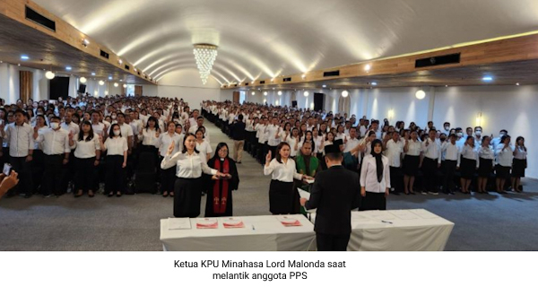 Sementara pelantikan terhadap 810 anggota PPS yang akan bertugas dalam Pemilu 2024 dilakukan oleh Ketua Komisi Pemilihan Umum (KPU) Kabupaten Minahasa, Lord Malonda.