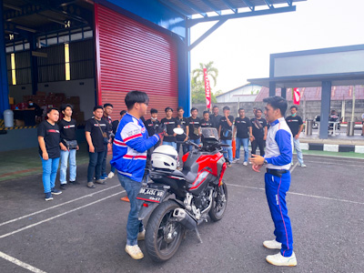 Sosialisasi dibawakan oleh Instruktur Safety Riding Honda DAW dengan memberikan materi yang bertujuan agar peserta memahami pentingnya keselamatan berkendara, teknik dasar berkendara serta mampu mengenali dan memprediksi bahaya.