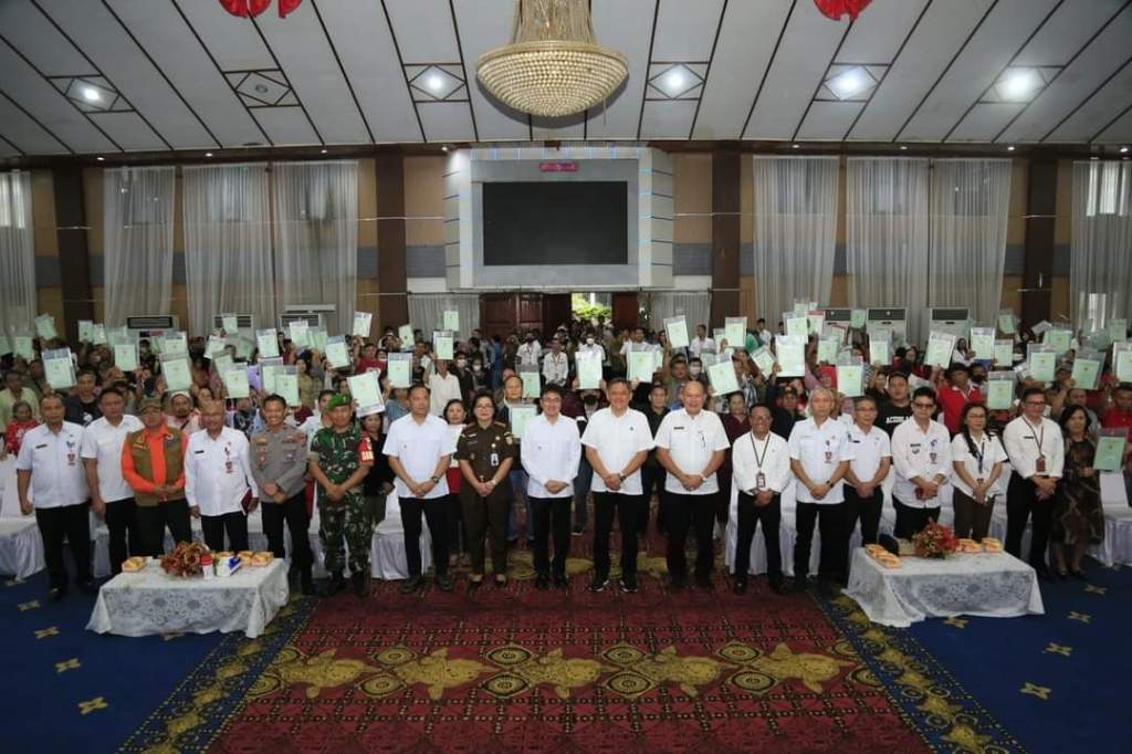 SULUTNEWSTV.com, MANADO – Wali Kota dan Wakil Wali Kota Manado Andrei Angouw dan dr Richard Sualang menghadiri kegiatan Penyerahan Sertifikat Hak Atas Tanah Hasil Kegiatan Redistribusi Tanah di Ruang Serbaguna Kantor Wali Kota Manado.