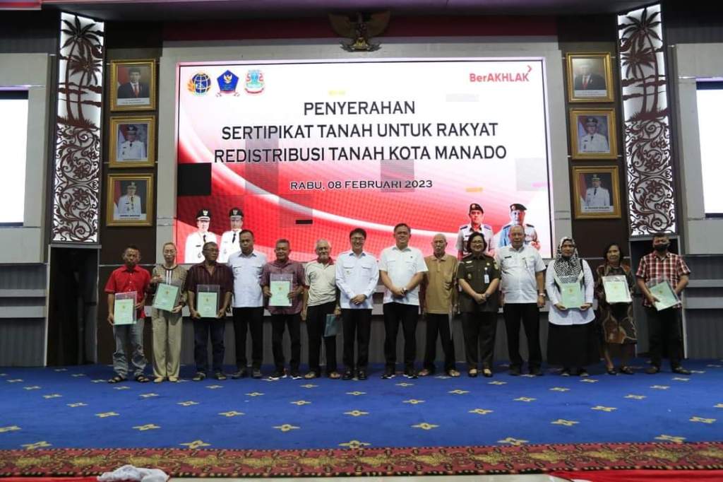 Penyerahan Sertifikat ini dilakukan oleh Wali Kota Manado didampingi Wakil Wali Kota Manado, Kakanwil Badan Pertanahan Sulut dan Kepala Kantor Badan Pertanahan Manado.