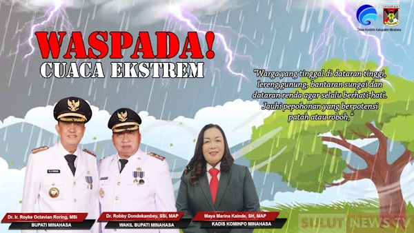 Tondano – Pemerintah Kabupaten (Pemkab) Minahasa, menghimbau kepada masyarakat agar selalu waspada terhadap cuaca ekstrem yang beberapa hari ini kemungkinan masih dapat terjadi.