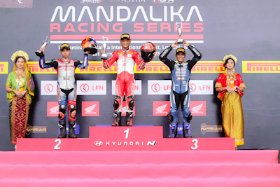 SULUTNEWSTV.com, NTB – Pebalap Astra Honda Racing Team (AHRT) Rheza Danica Ahrens berhasil menjadi pemenang di race pertama seri perdana Kejuaraan Nasional (Kejurnas) Balap Motor pada ajang Mandalika Racing Series di Pertamina Mandalika International Street Circuit, Nusa Tenggara Barat yang dihelat pada hari Sabtu (4/3/2023), bersamaan dengan ajang balap FIM Superbike World Championship 2023.